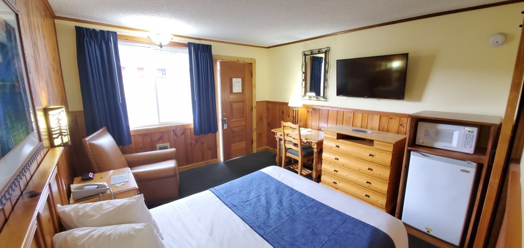 Non smoking room with 1 queen bed accommodating up to 2 adults. Mini-frig, microwave, high speed internet, air conditioning, cable HDTV, self-controlled temp, direct dial phone with free US calls, clock radio, smoke alarm, hair dryer, bathtub, and shower. Bistro table and 2 chairs on balcony outside room.