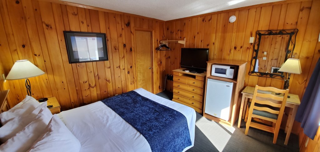 Non smoking room with 1 queen bed accommodating up to 2 adults. Mini-frig, microwave, high speed internet, air conditioning, cable HDTV, self-controlled temp, direct dial phone with free US calls, clock radio, smoke alarm, hair dryer, bathtub, and shower. Bistro table and 2 chairs on balcony outside room.