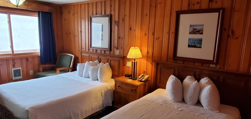 Non smoking room with 1 queen and 1 double bed accommodating up to 4 adults. Mini-frig, microwave, high speed internet, air conditioning, cable HDTV, self-controlled temp, direct dial phone with free US calls, clock radio, smoke alarm, hair dryer, bathtub, and shower. Bistro table and 2 chairs on balcony outside room.